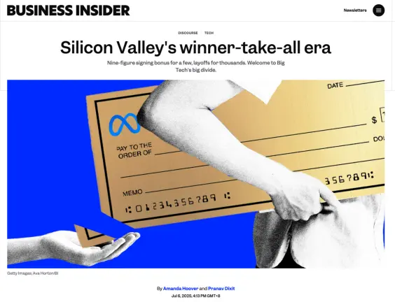 一位前Meta員工透露,隨著“頂尖科技人才終于獲得了像頂級運動員一樣的待遇”,許多科技行業的普通員工充滿了怨恨和嫉妒,“尤其是在那些已經在這個行業工作了一段時間的人中。”