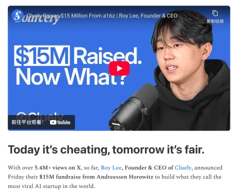 這不禁讓人想到韓裔小哥Roy Lee,他構建AI輔助的面試作弊器,成功拿到包括Meta在內的多個大廠的實習機會,之后又手撕offer,高調宣布創業。如今,他的公司Cluely已經拿到了2000萬美元的總融資額。
