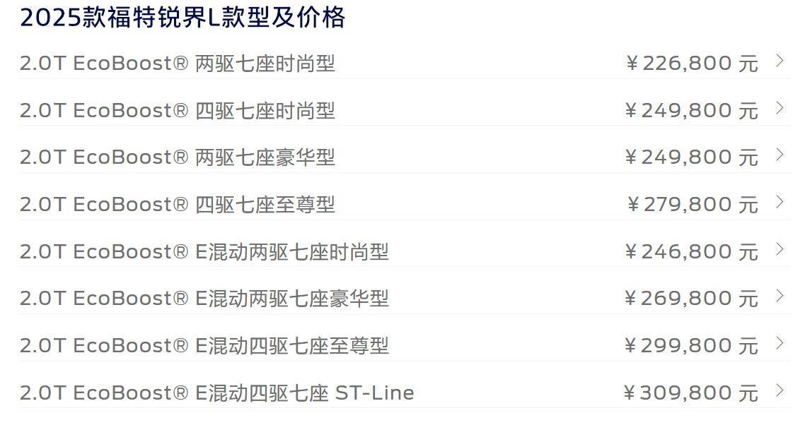隨著二、三胎政策的放寬,越來越多的多人口大家庭出現,作為家庭頂梁柱,也是購車的決策者,買一臺什么車既劃算又靠譜?不少人會選擇2025款福特銳界L這臺大7座SUV。因為它不僅有燃油版,也有混動版,而且是油電混動車型,沒有插混、增程車帶來的充電和饋電狀態高油耗焦慮。