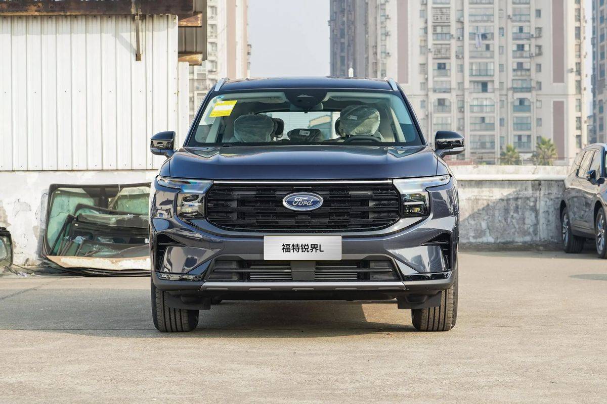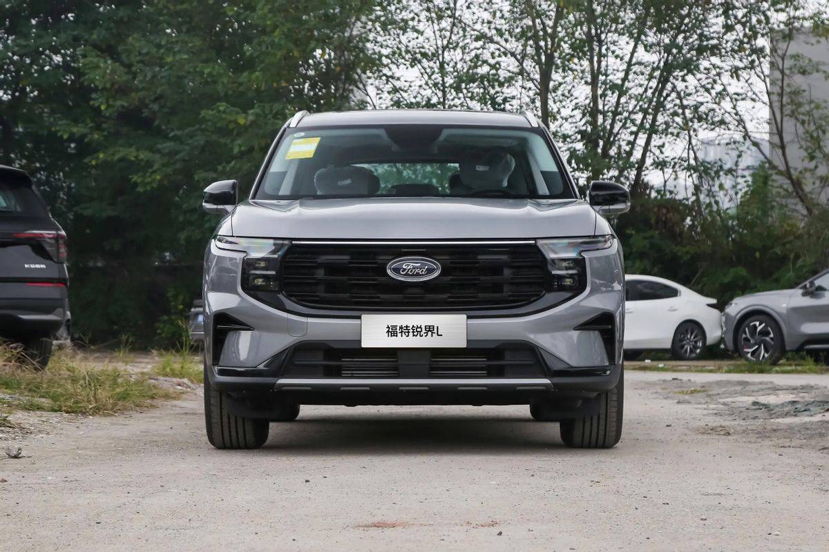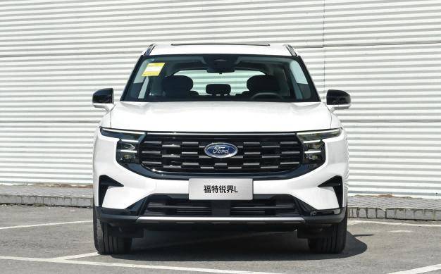 25款福特銳界L除輪轂、行李架外,全車系外觀沒有明顯變化,前臉采用了大尺寸進氣格柵,搭配黑色中網,視覺上顯得大氣且有沖擊力,提升了車輛的辨識度。分體式大燈設計,上部為LED日間行車燈,造型銳利,下部為遠近光一體式大燈,采用LED光源,照明效果出色。棱角分明的前保險杠設計,增加了車輛的硬朗感和運動氣息,與整體的SUV風格相契合。