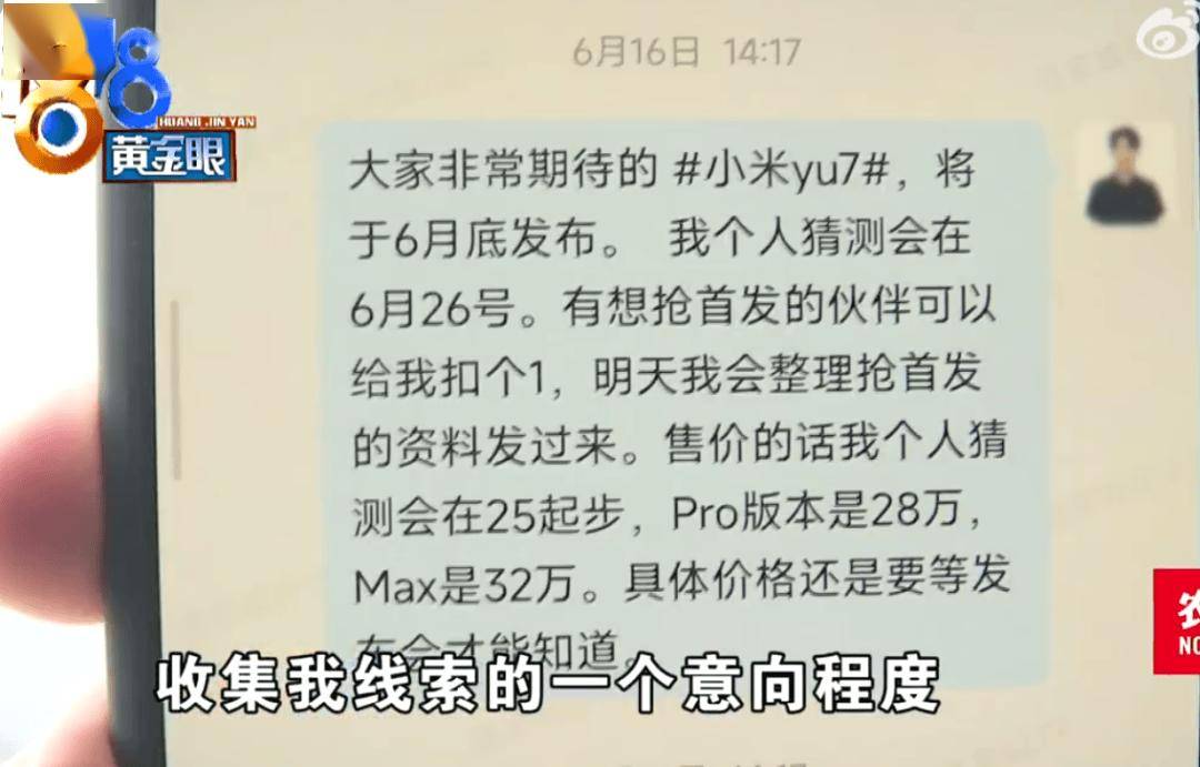 實習銷售小駱(化名),任職于小米經銷商浙江博易通信器材有限公司。2025年6月16日,他根據雷軍公開提及“YU6月底發布”、特斯拉Model Y定價(26.35萬起)及小米SU7 Pro配置(24.59萬),推測YU7三款車型價格(標準版25萬、Pro版28萬、Max版32萬)及發布會日期(6月26日),并通過工作微信向意向客戶群發。有意思的是,小駱的預測非常接近實際售價:官方最終公布的價格是標準版25.35萬、Pro版27.99萬、Max版32.99萬,發布會日期也完全正確。小駱預測的依據主要是特斯拉Model Y的價格(因為小米YU7是對標Model Y的)以及小米SU7 Pro的定價邏輯。他還推測發布會日期是6月26日,因為之前的發布會都是在周四舉行。