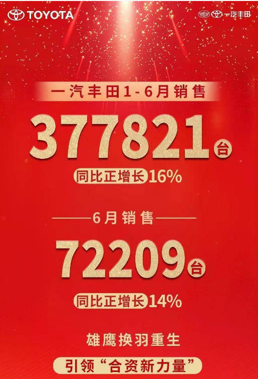 在行業(yè)競爭白熱化的2025年上半年,一汽豐田交出了一份亮眼的成績單:在剛剛過去的6月份,銷量7.2萬輛,同比增長14%;而上半年累計銷量37.8萬輛,同比勁增16%,在超強(qiáng)的市場壓力下,一汽豐田在主流合資陣營中持續(xù)正增長。
