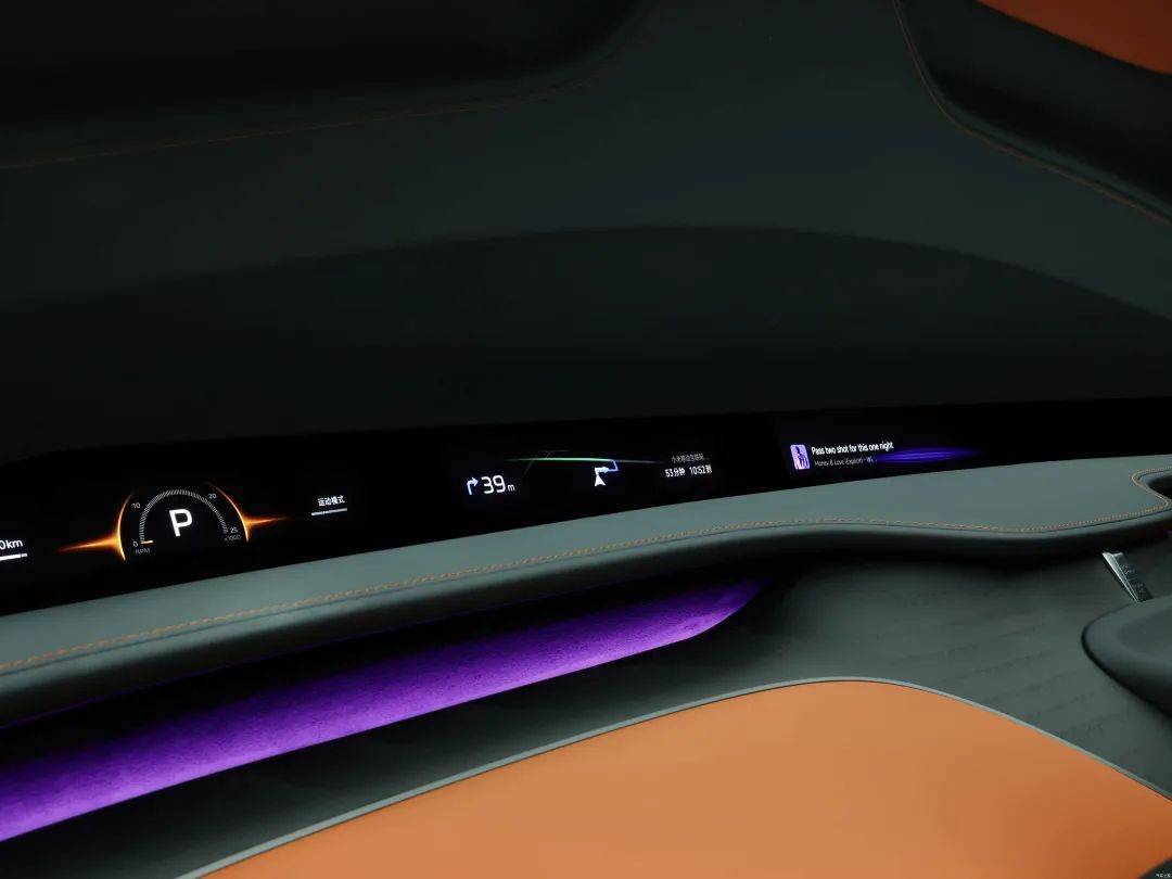 和Model Y的極簡座艙截然不同,YU7的內飾將科技豪華展現得淋漓盡致。新車取消了SU7上的翻轉式全液晶儀表,而率先使用了小米天際屏全景顯示系統,該系統由三塊Mini LED屏幕組成,通過全景曲面投影技術,將行車信息、駕駛模式切換以及轉向盲區影像等清晰投射在前風擋下側區域。此外YU7還提供了主副雙駕零重力座椅,標配后排135度電動調節座椅,保證乘坐舒適性。