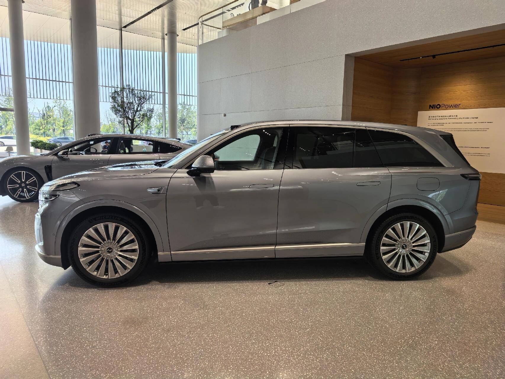 車身尺寸長寬高分別為5145/1998/1786mm,軸距3110mm,與問界M8(長寬高5190/1999/1795mm,軸距3105mm)相差不大。龐大的身軀配合方正飽滿的輪廓,以及立體的線條勾勒,給人感覺很有肌肉力量感。而車窗上沿、側裙、后包圍等細節處加入鍍鉻飾條點綴,再配合21英寸密幅式輪轂以及電動踏板,又帶來了豪華、尊貴氣息。