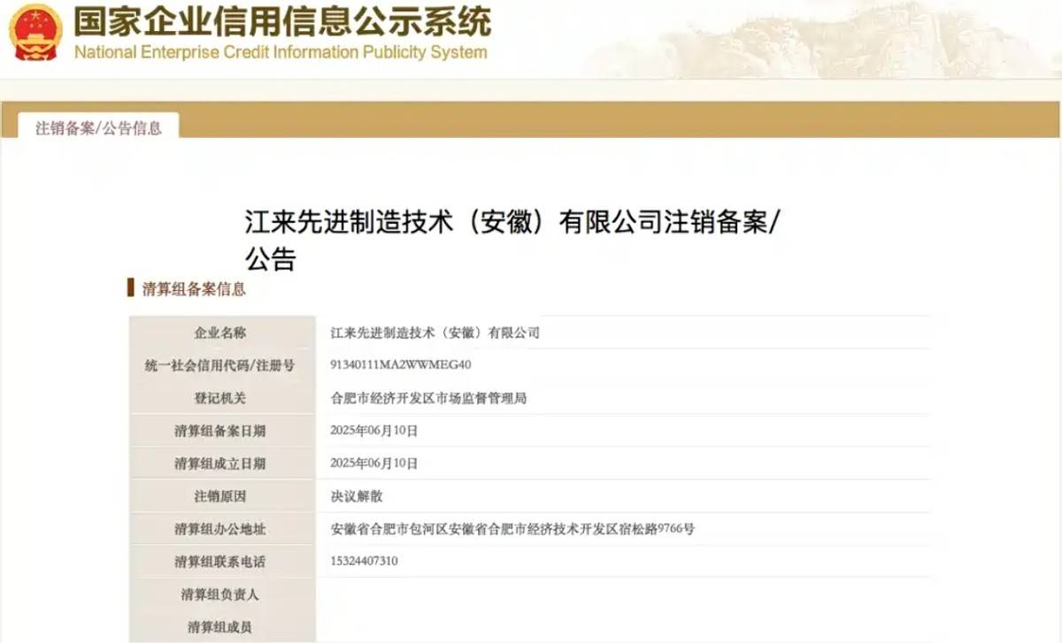 不過,隨著時間來到2025年7月,一則關于江淮蔚來共同持股50%合資公司的注銷備案公告,也引起了我們的關注。