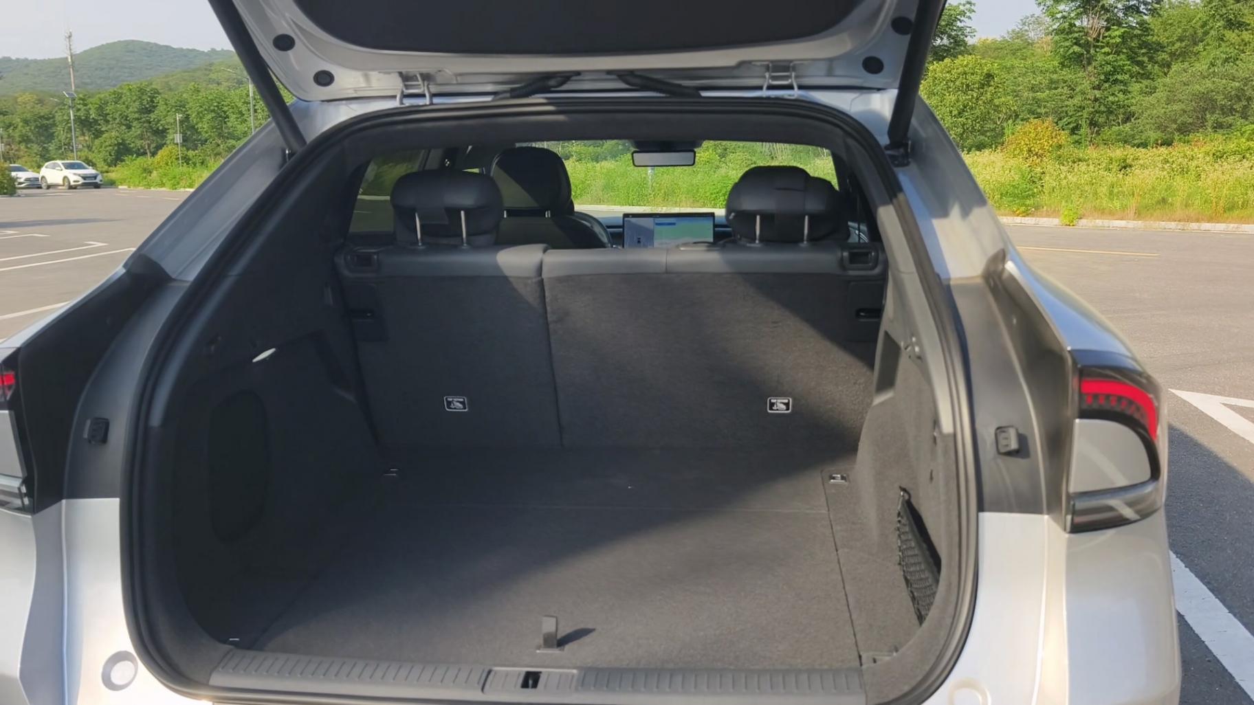 第一個,空間是真的大,哪哪都大,坐進去完完全全感受到空間的寬裕舒服,沒有什么局促的地方,頭頂距離基本上兩拳以上,座椅也很舒服,填充物軟硬適中,包裹性很好,按摩力度比P7+更大,還有一個巨大的后備箱和一個可以水洗的前備箱。四個座椅全系都有通風/加熱/按摩/電動調節,空間和乘坐舒適性這一點,確實是沒得黑。