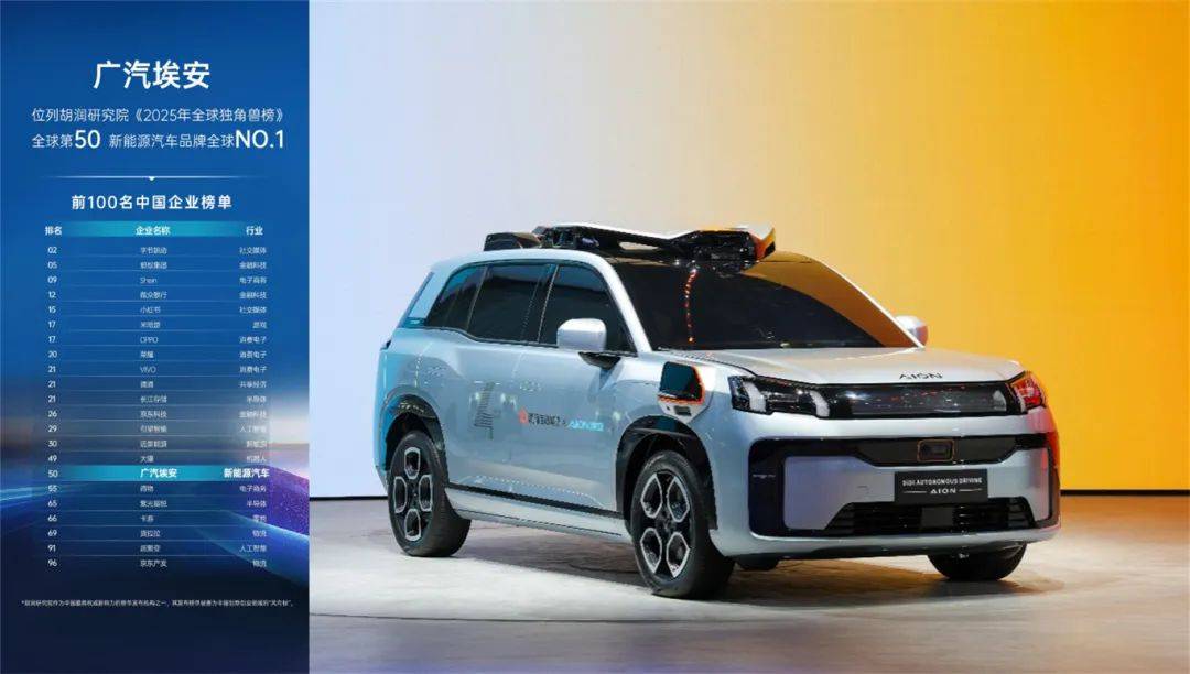 今年6月,不同于批發數據,廣汽埃安終端銷量為27848輛,還算是堅守住了自己的地盤。不僅如此,在品牌價值上,廣汽埃安還入選了胡潤研究所最新發布的《2025年全球獨角獸榜》,排名第50位,連續三年蟬聯全球最大新能源車企獨角獸。