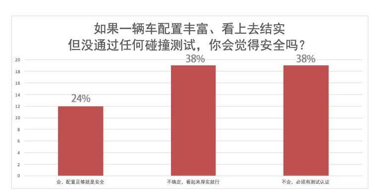 問卷中另一道具有代表性的問題是:“如果一輛車配置豐富、看上去結(jié)實(shí),但未通過任何碰撞測試,你是否會(huì)認(rèn)為它安全?”