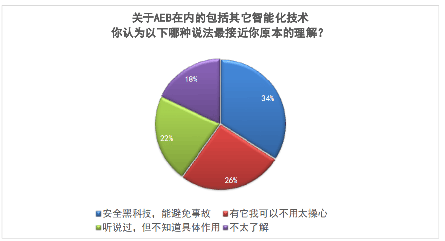“關(guān)于AEB在內(nèi)的包括其它智能化技術(shù),你認(rèn)為哪種說法最接近你原本的理解?”這是調(diào)查問卷中最引發(fā)討論的一題。
