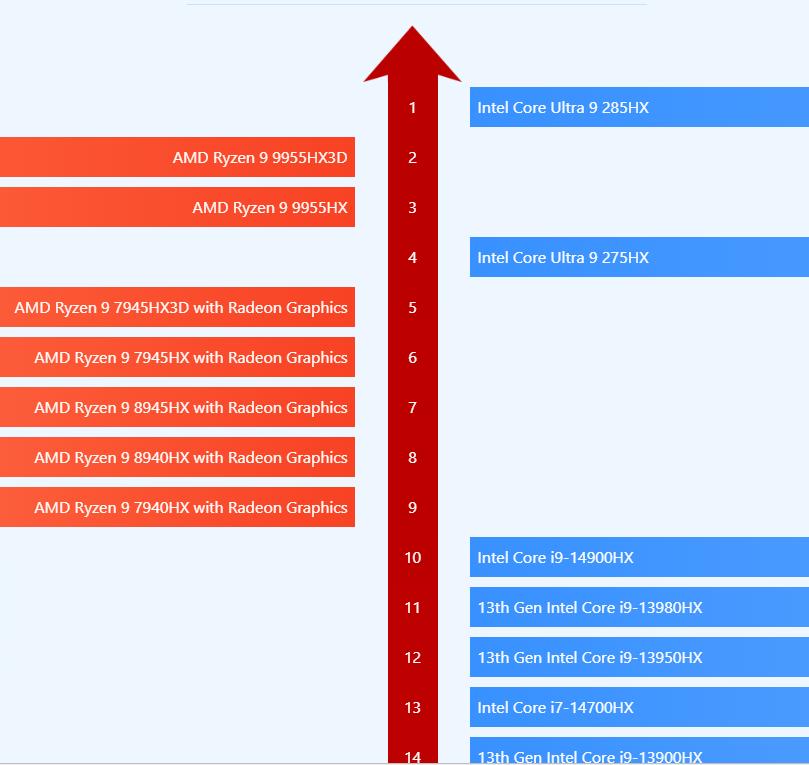 其中U9 275HX和R9 9955HX屬于一個等級,都是中端本中最強的處理器,其他四款都稍遜了一些。