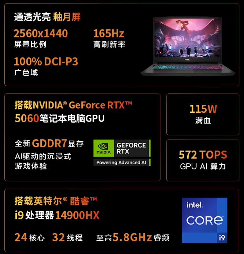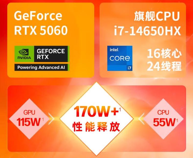 其配置了14代i7-14650HX,RTX5060,16GB DDR5內存,1TB M.2 SSD。