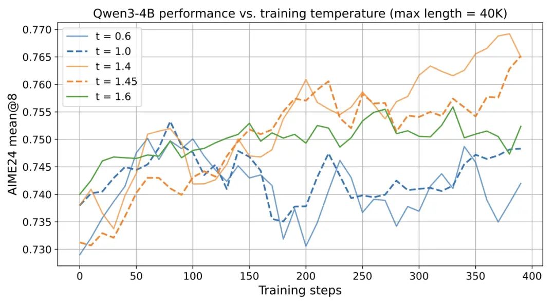 因此,Polaris把Qwen3-4B的初始訓練溫度設置為1.4。