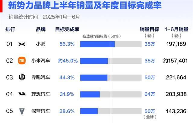 上半年新勢力銷量KPI,只有小鵬完成了!