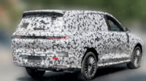 透過厚重的偽裝我們看到,新車將會采用全新的家族語言,貫穿式的大燈組已經若隱若現,中央應該是logo,并且前臉將采用封閉式的格柵,下方則有大尺寸的散熱口。