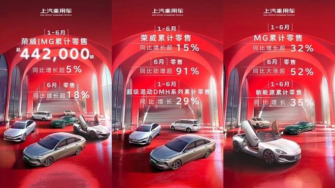MG品牌1-6月累計零售同比增長超32%,6月單月零售同比增長超52%。如今,“大乘用車板塊”已成為上汽集團自主品牌銷量貢獻“主力軍”之一。