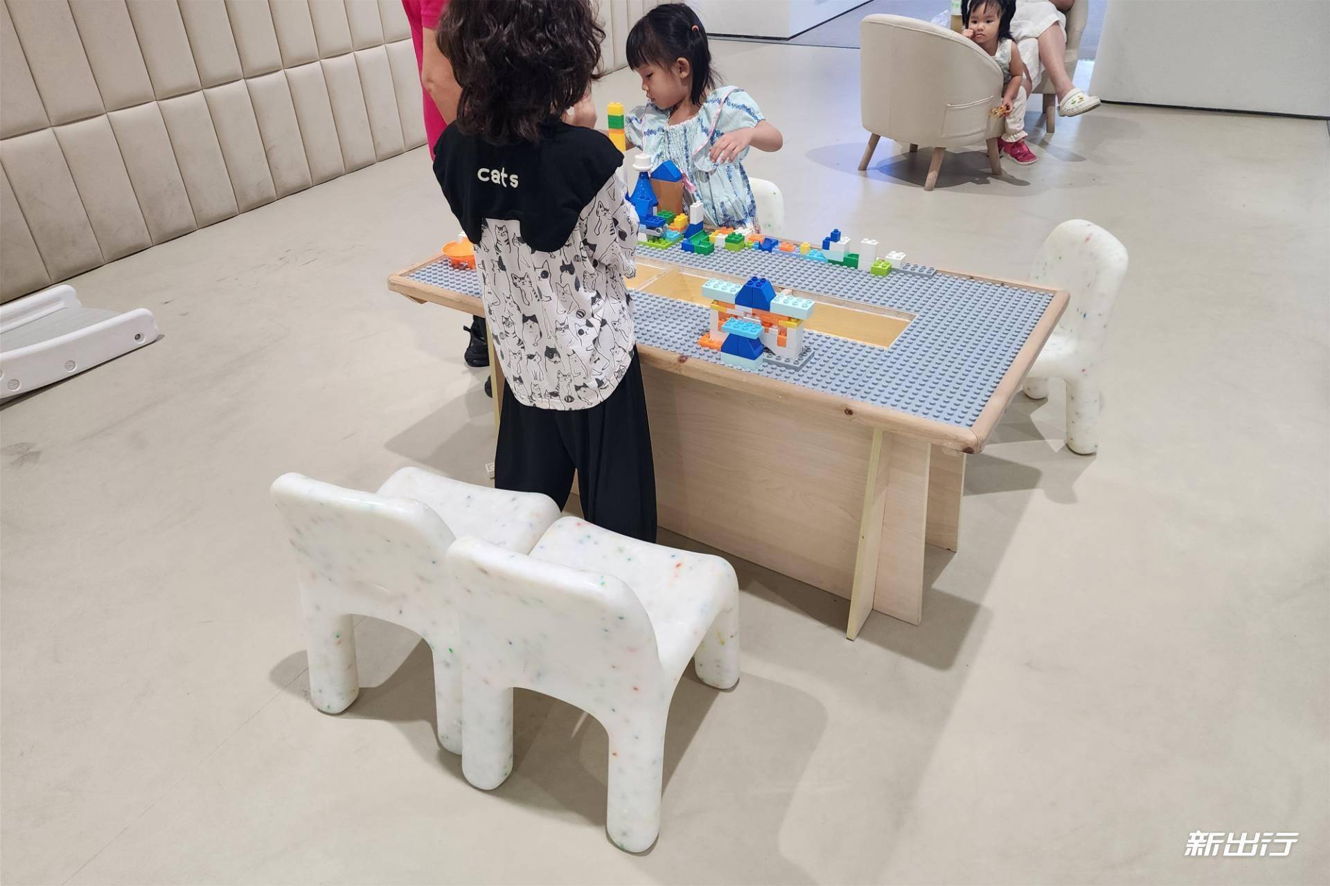 并且這邊也做了兒童的游玩區,擺放了積木以及滑梯供孩子游玩;這里還有一個屏幕上面播放一些關于 YU7 的用車指南,考慮得還是挺周到的。