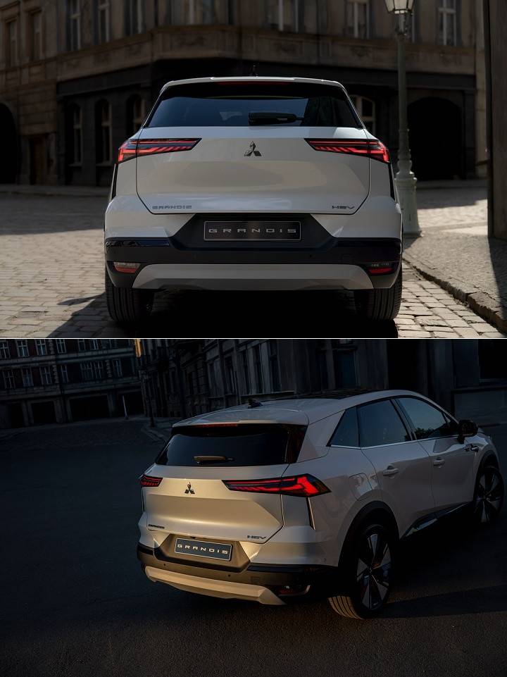 新世代 Grandis 車長、寬、高分別為 4,410mm、2,000mm、1,580mm,原廠表示,Grandis 的車名源自拉丁語,意指「巨大」與「雄偉」,象征寬敞車室空間與氣勢磅礡的外觀設計;車頭部分采用了三菱特有專屬識別「Dynamic Shield」,以光澤黑色水箱護罩搭配上緞面銀色飾條,車側輪廓則以向后延伸的流線型車頂線條做呈現,足下輪圈依車型不同有著 17 吋、18 吋和 19 吋。車尾方面采用了「Sculptural Hexagon」設計語匯,以六角形元素展現出力量感,并搭配橫向配置的尾燈組。