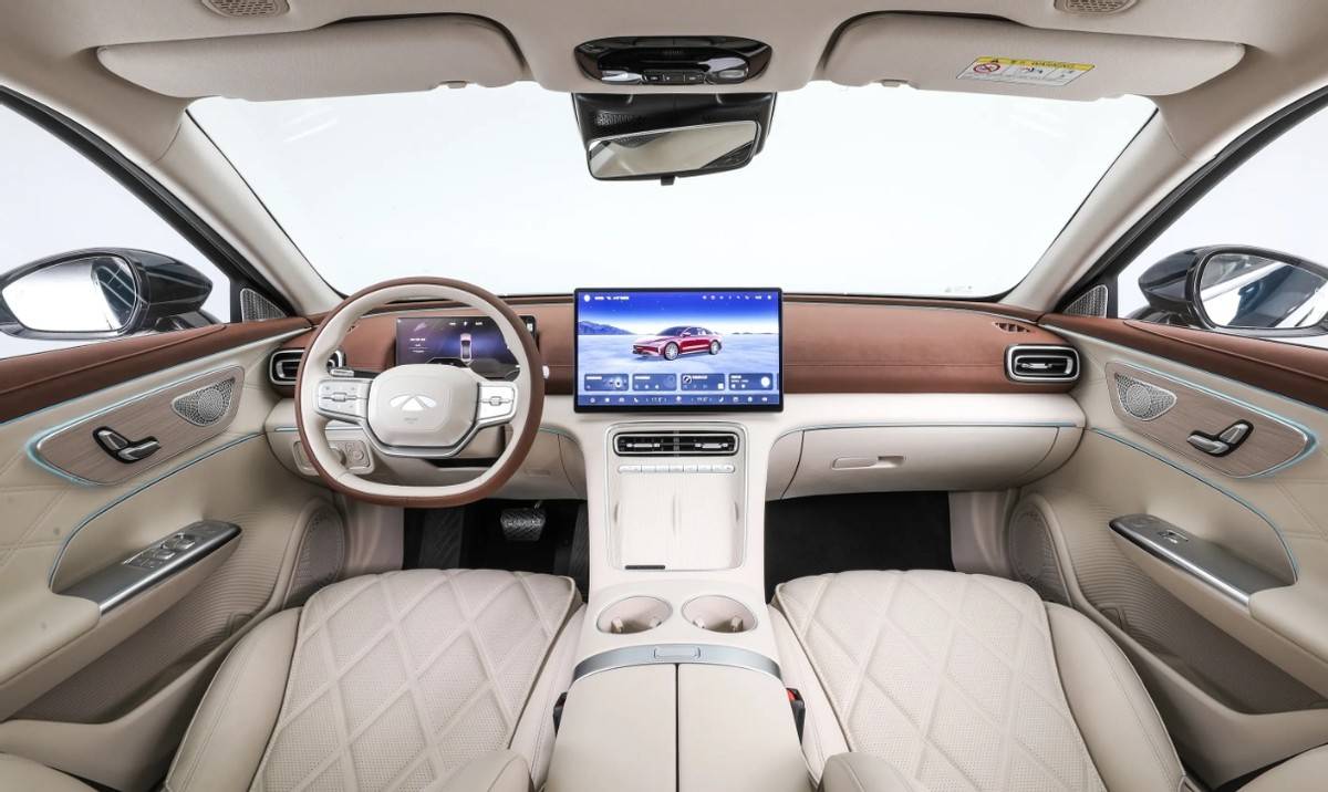 而來到車內,新車也是提供紅黑、棕白雙色涂裝可選,其中,以白色為主打的配色更凸顯簡潔優雅,配合雙輻式設計方向盤、懸浮式數字儀表、15.6英寸中控屏,整體也是主流的豪華內飾氛圍。