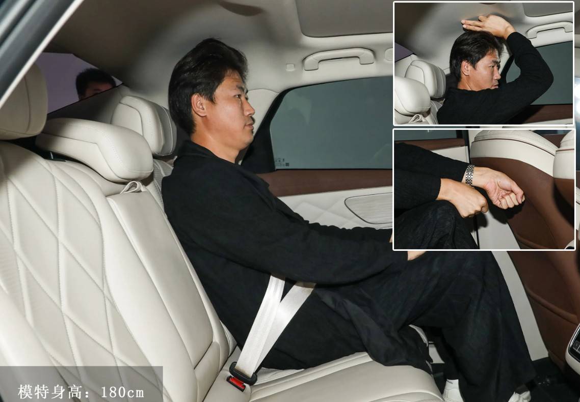 至于實用性,我們就以身高180cm的體驗者坐在后排為例,其頭部空間為2指、腿部空間超過2拳,整體也屬于是中大型車的標準。另外,新車后排中間地臺幾乎沒有凸起,這也大大拓展了整車的實用性,方便后排乘坐第三人。