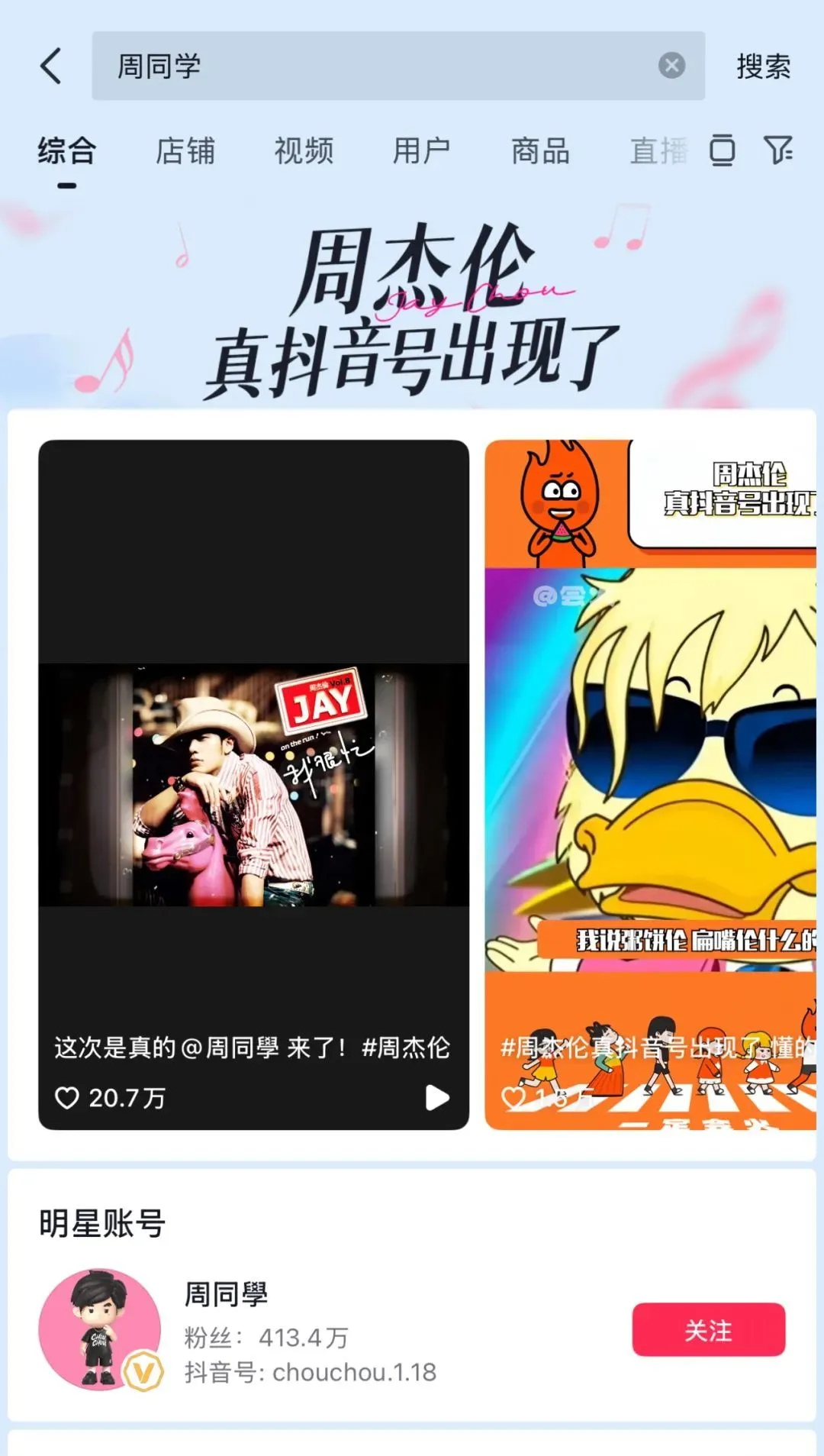 我在搜索“周同學(xué)”時(shí)發(fā)現(xiàn),抖音還為這個(gè)熱搜詞制作了一個(gè)專題頁面,聚合了用戶創(chuàng)作的相關(guān)內(nèi)容。頁面顯示周杰倫賬號(hào)@周同學(xué),頭像是“周同學(xué)”IP的玩偶形象。但這個(gè)頁面,屬實(shí)有點(diǎn)粗糙。