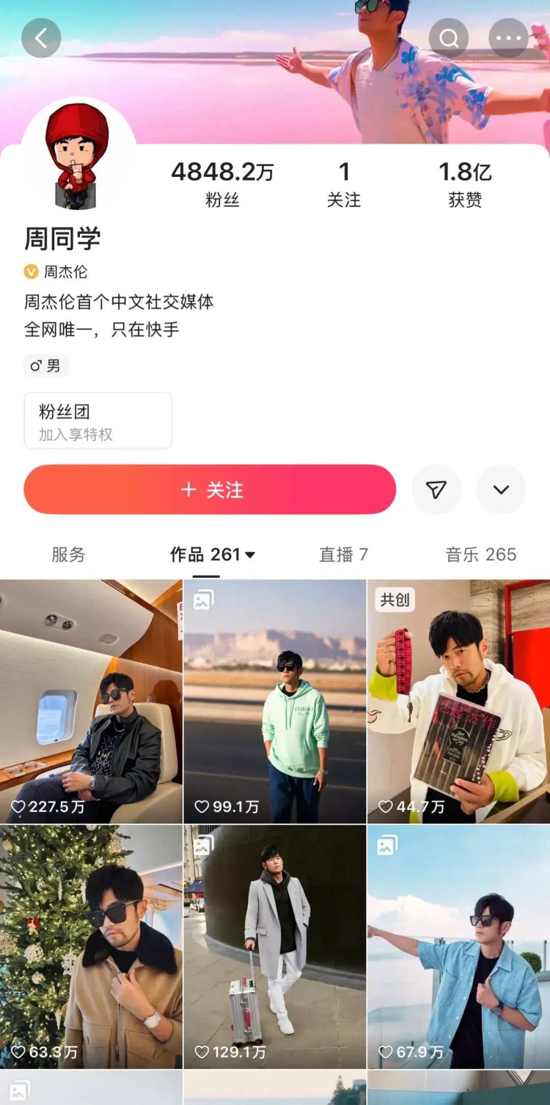 2020年,快手與周杰倫團(tuán)隊(duì)經(jīng)過數(shù)十輪的艱難溝通,最終邀請(qǐng)到周杰倫入駐。并且,快手還和杰威爾音樂達(dá)成版權(quán)合作,獲得周杰倫全部歌曲及MV的短視頻平臺(tái)授權(quán),用戶可免費(fèi)收聽歌曲、觀看MV,創(chuàng)作者也可使用相關(guān)素材。