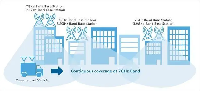 本次實驗由諾基亞提供設備、軟銀進行現場試驗:軟銀在東京都心銀座地區安裝了三個兼容 7GHz 的預商用基站,并使用大規模 MIMO(IT之家注:多天線收發)技術評估如何在城區實現與 5G 蜂窩網絡相當的 6G 網絡覆蓋。