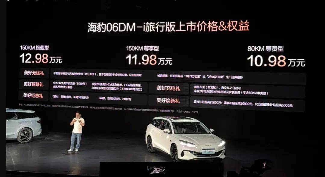 毫無疑問,比亞迪再次拿下中國車市銷量第一,單月零售銷量35.2萬輛,同比增長25.7%,與排名第二的吉利汽車約有15.6萬輛差距。比亞迪在新能源市場已擁有絕對的領先地位,旗下已布局比亞迪、騰勢、方程豹、仰望四大品牌,其中比亞迪品牌分為海洋網和王朝網,是比亞迪最重要的銷量來源。7月5日,海豹06DM-i旅行版正式上市,新車共推出3個車型版本,指導價10.98萬元、11.98萬元、12.98萬元。海豹06DM-i旅行版屬于海豹06DM-i的衍生車型,是一款中型旅行車,、搭載比亞迪第五代DM技術、天神之眼 C等系統。