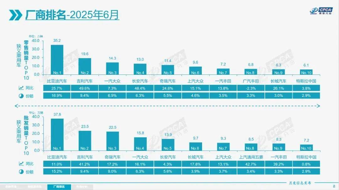乘聯會:6月國內乘用車零售208.4萬輛,自主品牌市場份額飆升至64%