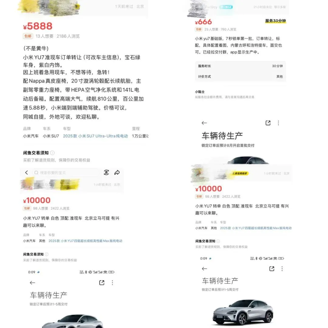 小米YU7 繃緊的產能,漫長的排期,也讓一些黃牛們嗅到了賺錢機會。他們打算快速搶單獲得更靠前的排期,然后加價轉讓獲利。