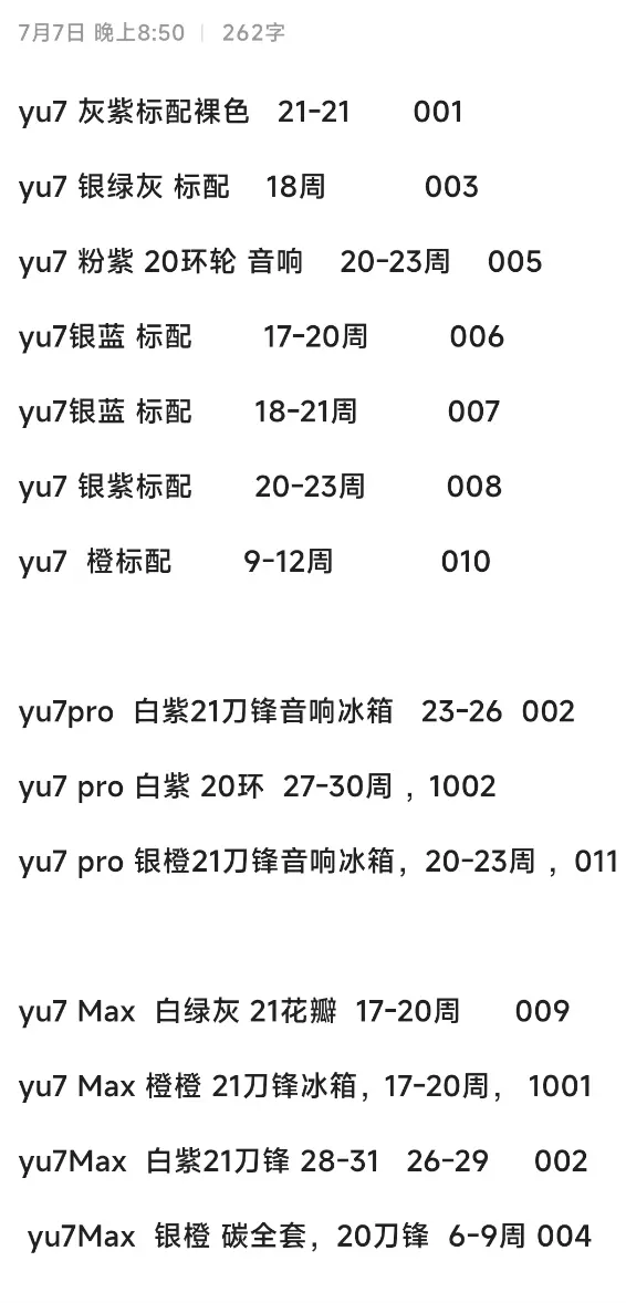 另一位北京賣家聲稱,他手里有 14 個不同版本的小米YU7訂單等待出售。“不同版本、不同提車日期,價格都不一樣。你選擇訂單后我給你報價。” 他對《財經故事薈》表示,小米YU7 標準版一般溢價 3000-4000 元。