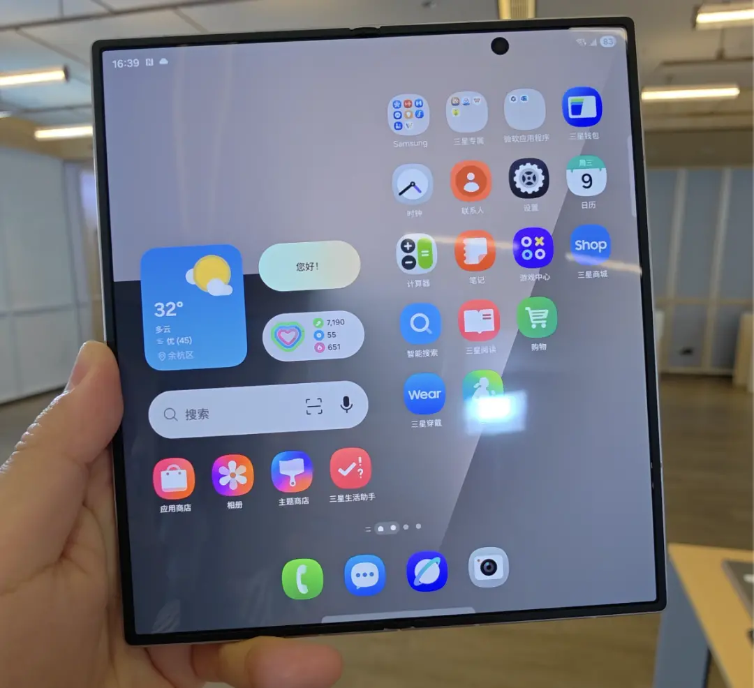 甚至于從正面看過去的第一眼,你根本不會意識到這是一臺三星折疊屏。得益于三星最近一年的「瘦身運動」,Galaxy Fold7 在一年之內減掉了半個雞蛋的重量。