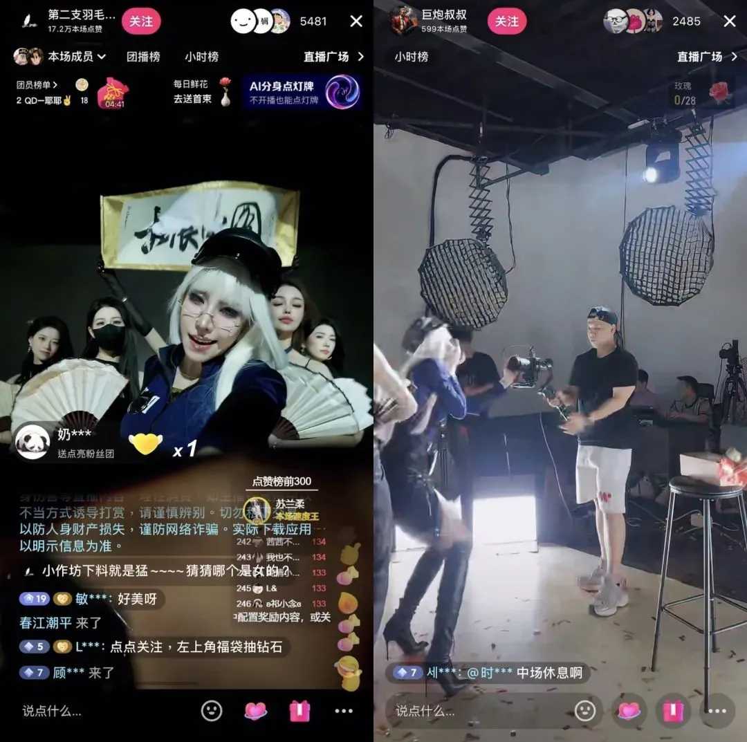 比如以《來財》《大展宏圖》出圈的團播直播間“DQ-002”,旗下也在抖音運營名為“巨炮叔叔”的賬號,專注輸出第三視角內容。