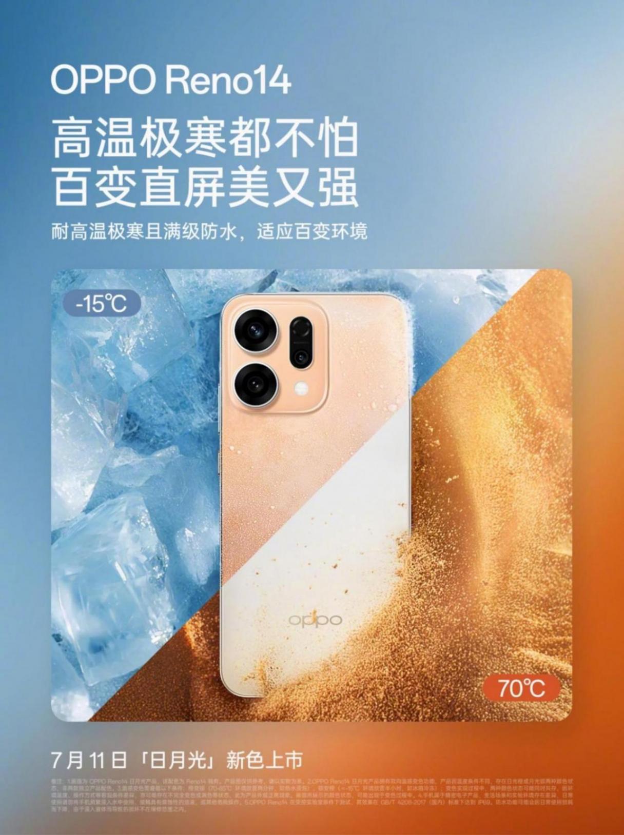 OPPO Reno14 的新配色變色原理也非常簡單,在后蓋低于 -15?C 的溫度下機身會變成橙色,當(dāng)溫度高于 70?C 時則會顯示銀色,在變色后回到常溫會一直顯示當(dāng)前的顏色。這也恰好證明了 OPPO Reno14 的耐高溫和耐寒能力,并且還有滿級防水,適應(yīng)各種環(huán)境。