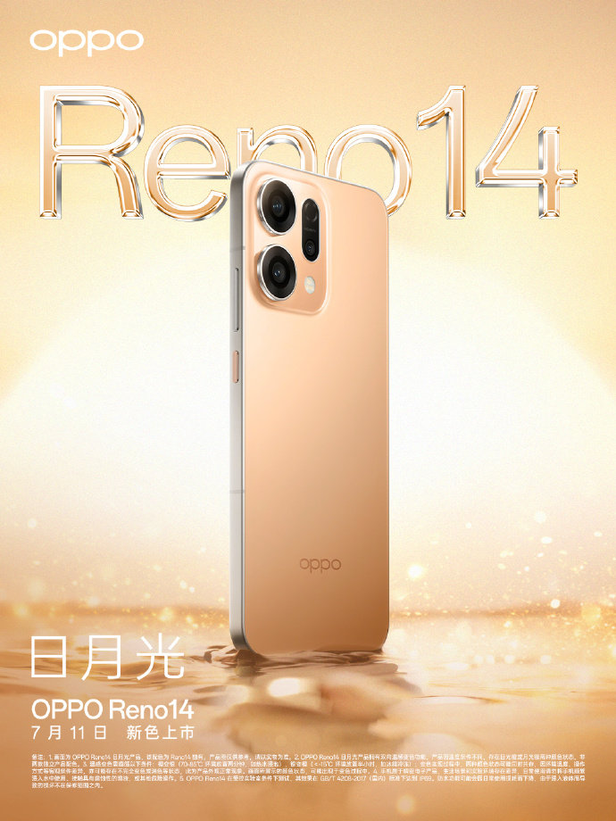 OPPO Reno14 「日月橙」新配色將在 7 月 11 日正式上市,目前已經(jīng)開啟預(yù)售,對這個溫致變色設(shè)計感興趣的朋友不要錯過啦。