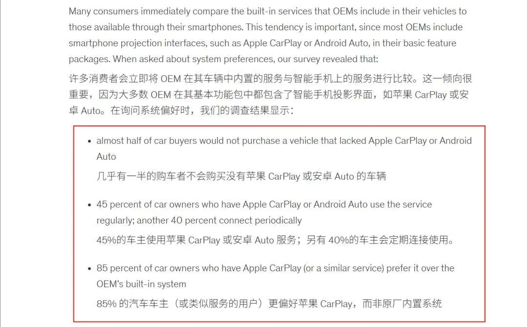根據(jù)2023年麥肯錫的調(diào)查,全球30%的消費者會因為車輛不支持CarPlay而放棄考慮購買,即使是車機不錯的新能源車...這點還得怪現(xiàn)在的車機體驗太碎片化了。