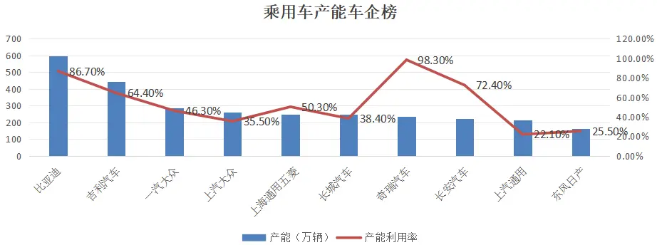 在汽車市場激烈競爭下既可以消化新能源產能,24年吉利產能444.82萬,產能利用率64.4%,實際產量286萬輛僅次于比亞迪,在這一輪車企產能出清賽中初步贏得了主動權;