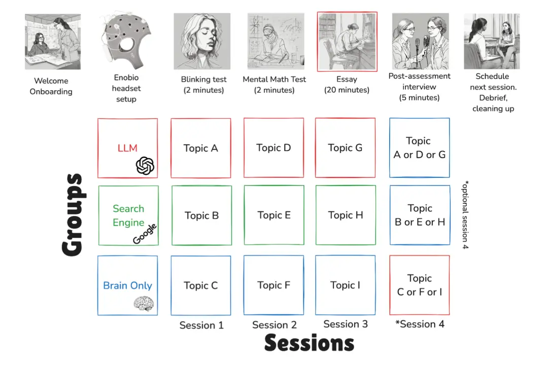 先簡單介紹一下MIT的研究《Your Brain on ChatGPT: Accumulation of Cognitive Debt when Using an AI Assistant for Essay Writing Task》。