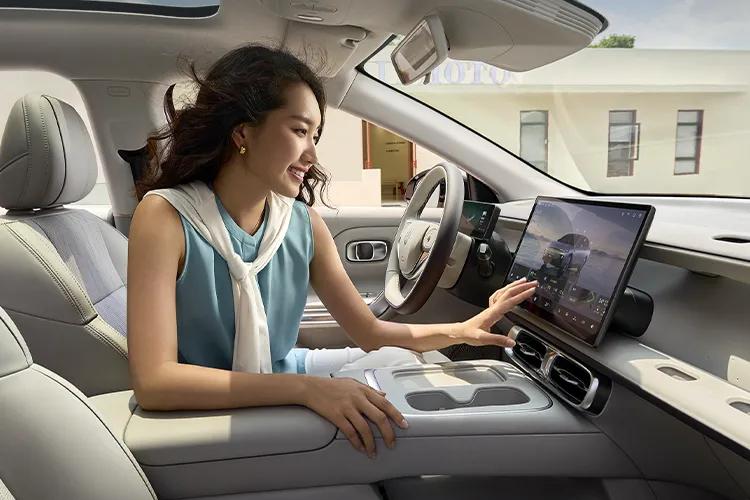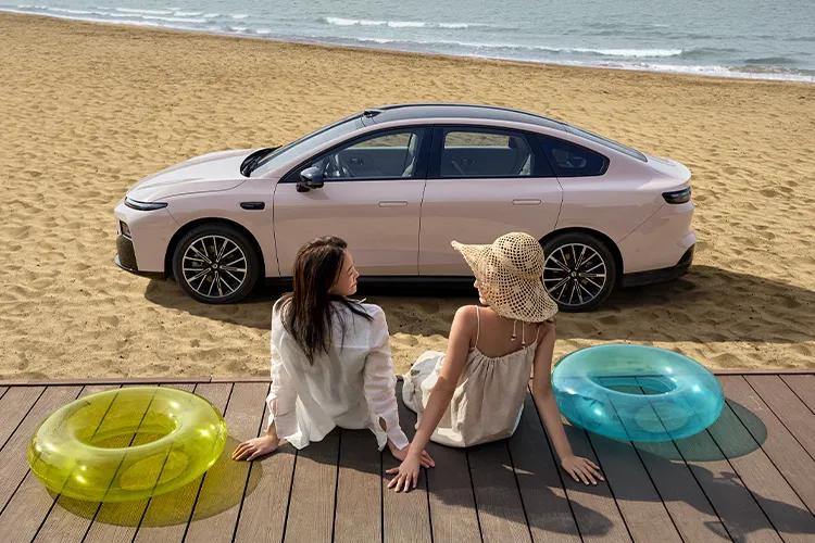 這車的風(fēng)阻系數(shù)也挺厲害,低風(fēng)阻輪轂工況下能到0.197Cd,比保時(shí)捷Taycan的0.22Cd、特斯拉Model S的0.208Cd都要低。跑起來(lái)又穩(wěn)又省力,這點(diǎn)確實(shí)下了功夫。車輪是星芒運(yùn)動(dòng)輪轂,之前調(diào)研的時(shí)候,好多人都覺(jué)得這個(gè)設(shè)計(jì)特別年輕化,排到了前面。