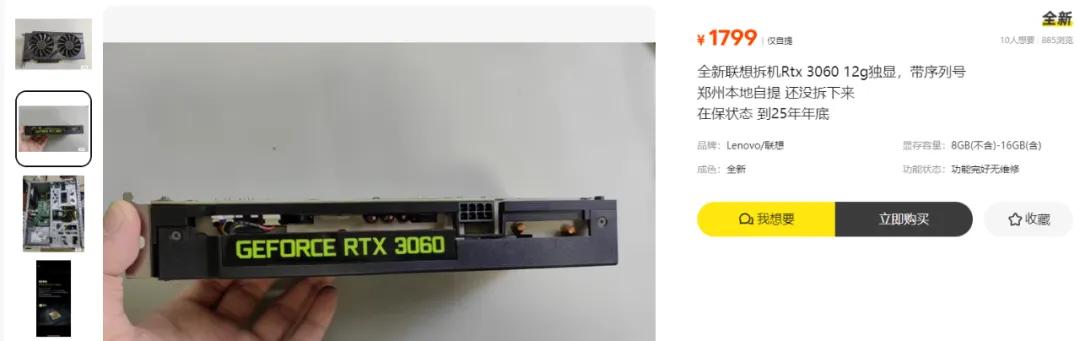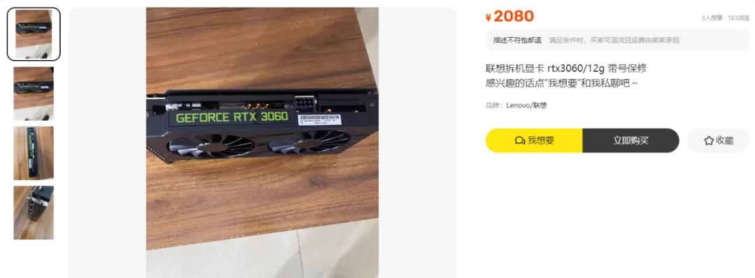 某魚流出“全新”聯(lián)想拆機(jī)RTX 3060 12g顯卡,帶聯(lián)想保修三年質(zhì)保?
