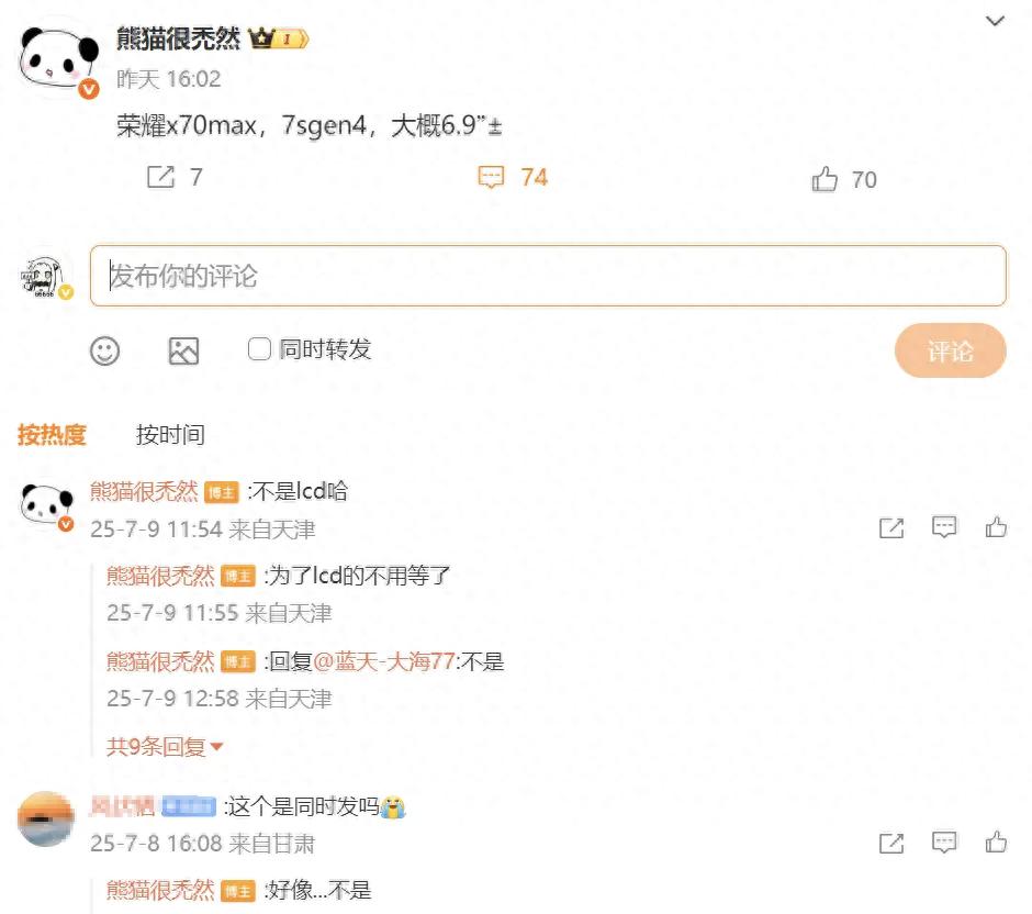據博主透露的信息,榮耀計劃在7月中旬推出X70標準版后,于后續單獨發布X70 Max機型,大概率是8月份。