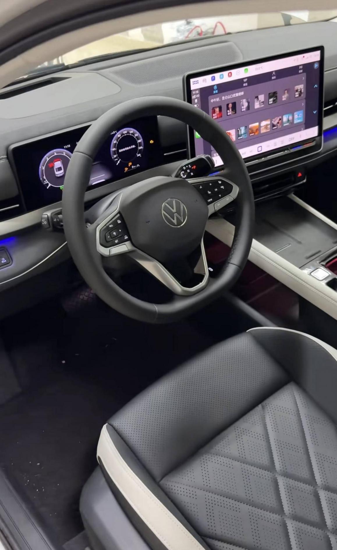 內(nèi)飾也延續(xù)了與邁騰(B9)類似的家族化設(shè)計語言,簡潔的環(huán)抱式座艙內(nèi)配備15英寸2K懸浮式中控大屏,加之矩形全液晶儀表盤以及HUD抬頭顯示,營造出科技氛圍,并搭載8155芯片加持的車機系統(tǒng)。同時還可以看到,三幅式多功能方向盤后方為懷擋式換擋機構(gòu),鏤空副儀表臺上將配備50W手機無線充電、一鍵啟動按鍵、電子手剎以及雙杯架等配置,并采用拉桿式開門方式。