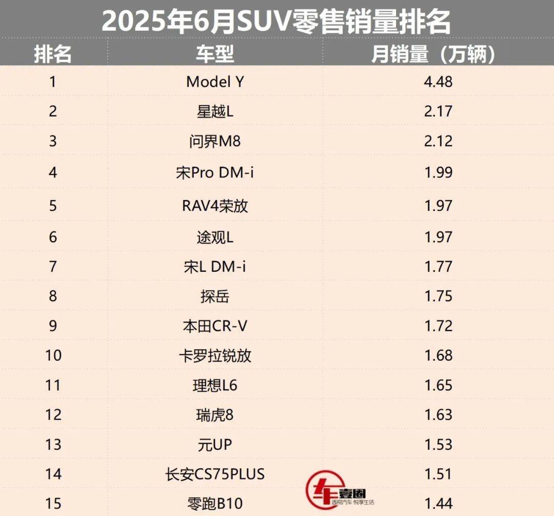 縱觀6月的SUV銷量榜Top15,除了一騎絕塵的特斯拉和眾多“老面孔”之外,問界M8和零跑B10兩款首次入榜的全新車型無疑更為引人注目。前者具備爭冠實力,后者的上升空間亦不可小覷——7月的SUV市場格局,也會因此平添更多變數?