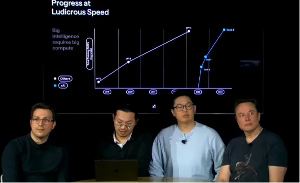 而坐在馬斯克身邊的,又是兩位華人。不同于OpenAI發布會往往一人一段輪流講的風格,xAI發布會上三個人互相接話,更像是一場既有腳本又有思維碰撞的新品討論會。