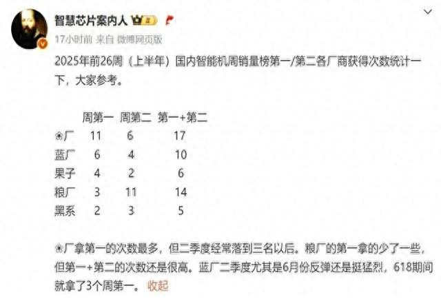 2025上半年,華為手機(jī)國內(nèi)第一穩(wěn)了!11個(gè)周第一,6個(gè)周第二