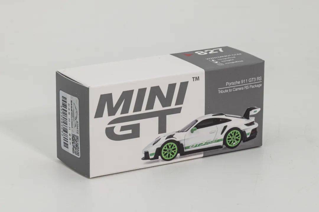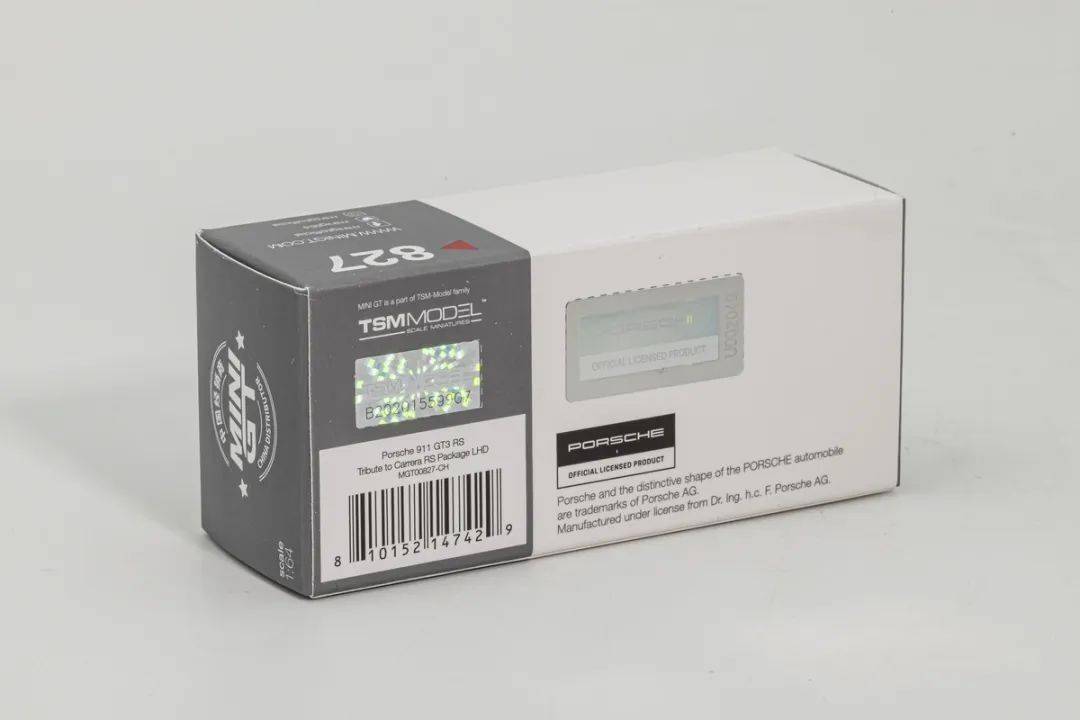模型采用MINI GT經典的標準紙盒包裝,封面為模型的照片,內部為吸塑支撐,因為是軟耳朵,基本沒有運輸風險,這款產品的編號為827,感覺已經相當夸張了;另外MINI GT的產品,都是有原廠授權的,畢竟是大品牌。