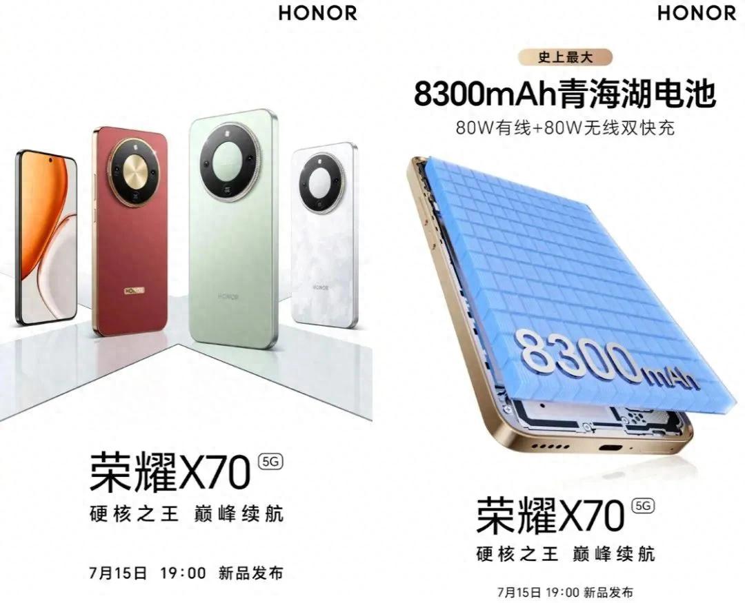 這幾天網(wǎng)上突然冒出來好多新手機的信息,主要是榮耀和紅米兩家。榮耀定在7月15號晚上7點發(fā)新機叫X70,說是裝了個8300mAh的大電池,能無線充還能有線充,兩種都是80W。這個電池容量挺夸張的,比之前出的那些手機都要大,不過無線充電好像只有頂配版才有。