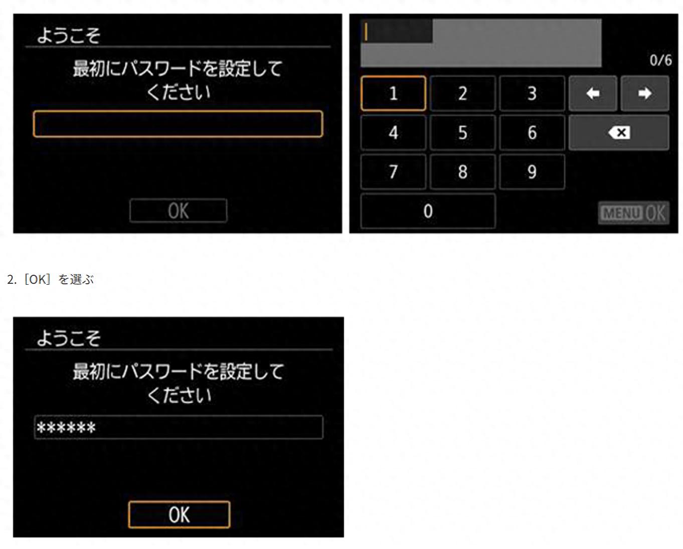 啟用該功能后,相機(jī)首次啟動(dòng)或進(jìn)行固件更新時(shí),將需要輸入用戶設(shè)定的密碼。