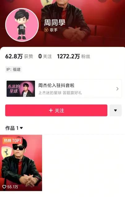 截至發稿,周杰倫抖音賬號粉絲數超1283萬,該視頻點贊量已超86萬。