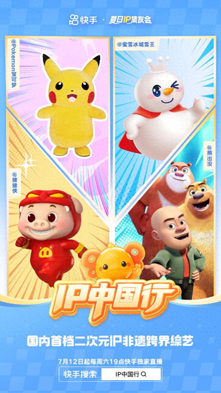 該節(jié)目由快手二次元出品制作,雪王、熊出沒(méi)、豬豬俠、寶可夢(mèng)四大超人氣二次元IP攜手快手創(chuàng)作者,將前往鄭州、深圳、汕頭、普洱四座城市,開(kāi)展融合城市地標(biāo)打卡與非遺文化體驗(yàn)的旅程。
