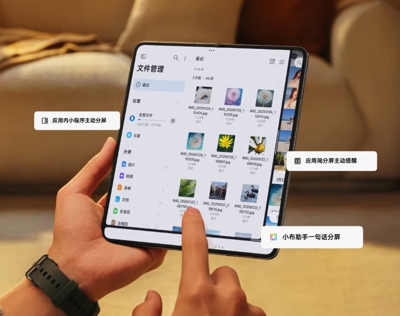 OPPO Find N5的分屏體驗堪稱AI時代折疊屏手機的典范,特別是AI全景虛擬屏功能不但可以實現(xiàn)多窗同開,讓效率全面拉滿,同時還能夠?qū)崿F(xiàn)多窗口應(yīng)用同開,小布助手支持一句話分屏與超級分屏拖拽,讓屏幕實用面積翻倍、分屏操作效率全開。